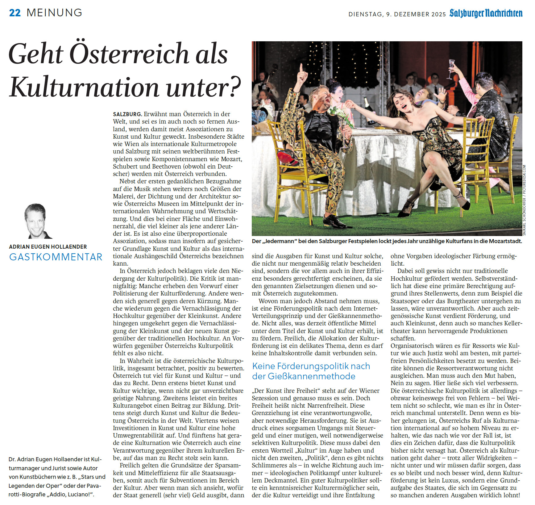 Kommentar von Dr. Adrian Hollaender zum Thema Kulturnation Österreich in den Salzburger Nachrichten 09.12.2025